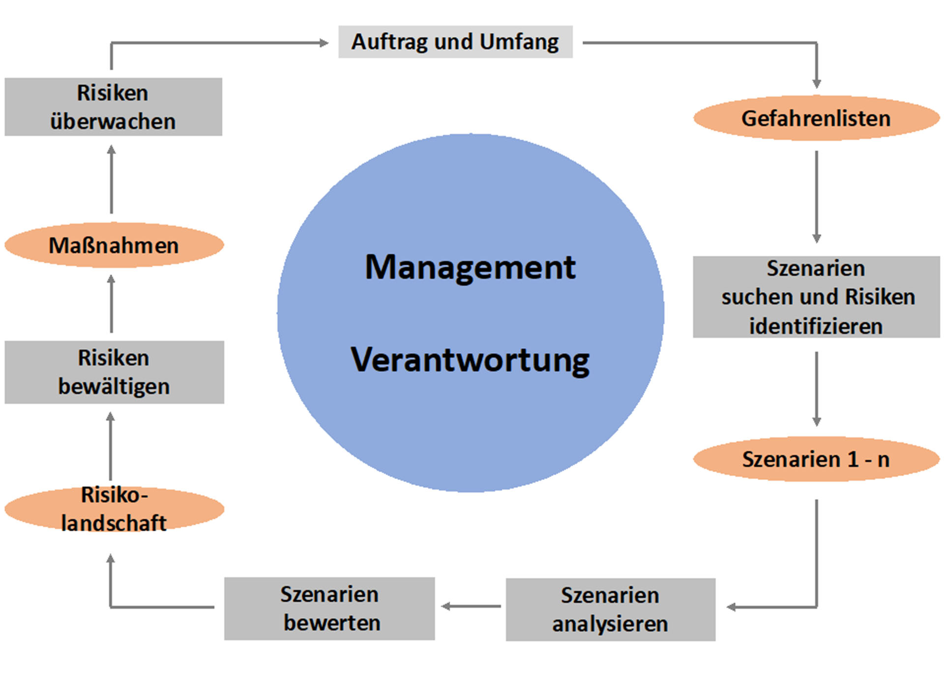 Ziel des Risk-Management-Prozesses (Abb. 1) ist nicht der Ausschluss und die vollständige Vermeidung von Risiken. Vielmehr sind Risiken mit dem Wirtschaften und jeder Geschäftstätigkeit verbunden. Risiken, also die Wahrscheinlichkeit, dass es aufgrund der Gefährdungsexposition zu Schäden für die Verbraucher kommt sowie deren Einflussfaktoren können sich ständig verändern. Daher sind Risikobewertungen immer nur zeitlich begrenzt wirksam. Vorhandene Risiken müssen rasch und effizient identifiziert werden. Die SAFEFOOD-ONLINE Datenbank ist eine wertvolle Hilfe bei der kontinuierlichen Identifikation und Steuerung von Risiken, um diese zu minimieren bzw. beherrschbar zu machen.