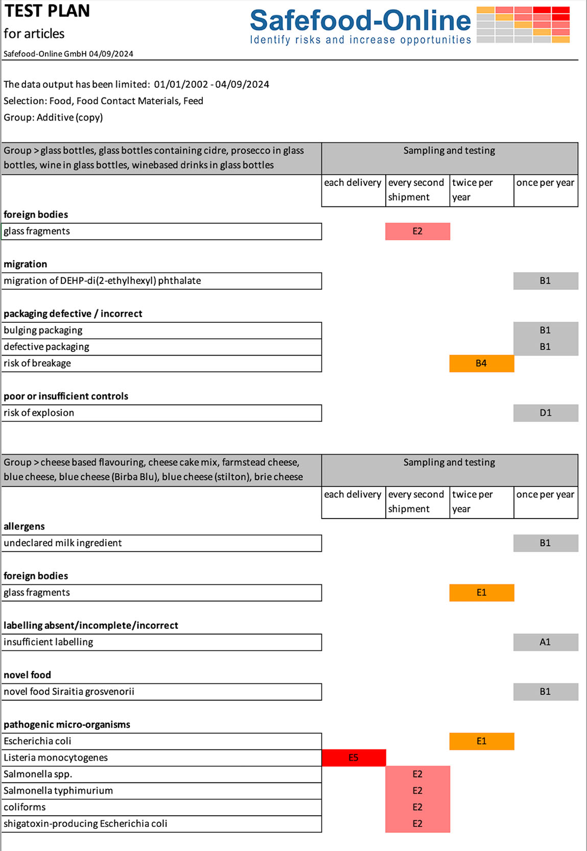 The data is exported as a Microsoft Excel file (figure 11). The hazards are displayed in such a way that a four-stage model is proposed following a calculation using a stored algorithm. The evaluation can change daily if new data is added to the queried food, food contact material or feed.