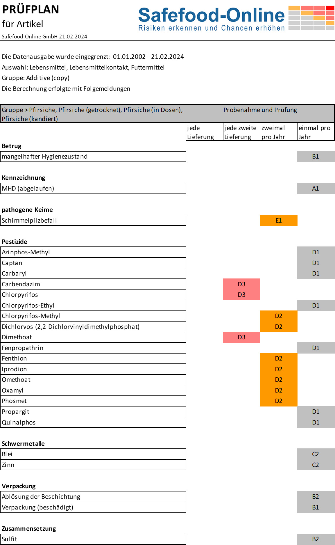 - bei jeder zweiten Lieferung (entspricht der Einstufung „nicht vertretbare Risiken“)