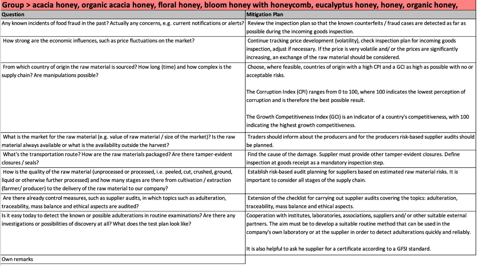 In order to eliminate or minimize the risk of fraudulent activities, two essential steps are required: a "vulnerability assessment" to identify potential vulnerabilities and a "food fraud mitigation plan" with defined control measures to reduce the risks as much as possible based on the identified vulnerabilities.