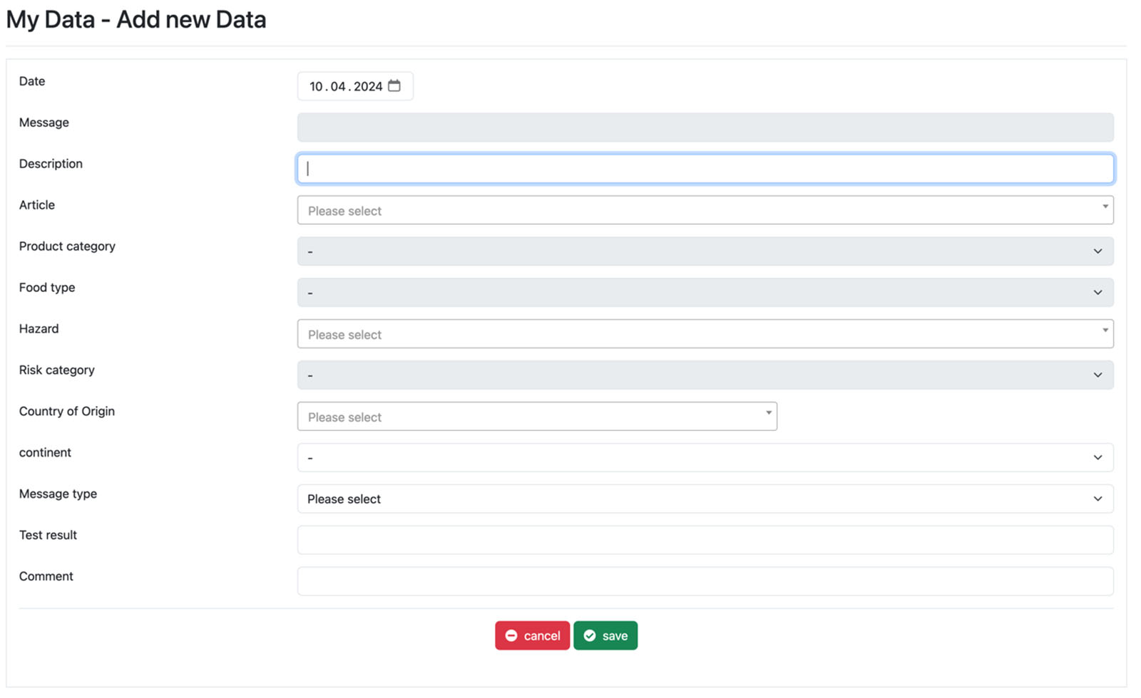This module was programmed at the request of many SAFEFOOD-ONLINE customers (figure 14). The self-entered data (e.g. own findings from the incoming goods reports or complaints) is available to all participants of their assigned user group (= name of the company) after the personal login. The data can be included in the evaluation. Other participants have no access to the entered data or notifications. This means that every company can work with all available SAFEFOOD-ONLINE data and also with internal company findings.